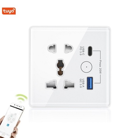 Produits australiens pour la maison intelligente Prises de courant double Wifi avec USBC SAA Australie Tuya 2 Gang Socket PD 20W Outlet Voice Control