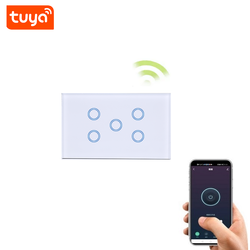 Tuya App Controle SAA Smart Touch Glass Panel 5 Botão Interruptor WiFi Horizontal Padrão Australiano Wifi Smart Home Light Switch