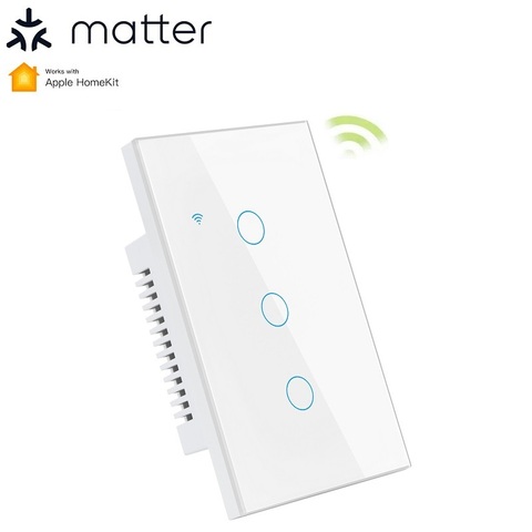 120mm Smart Wifi Matter Switches 3 Botões Controle Remoto Interruptor Inteligente Elétrico Homekit Interruptor De Toque De Vidro 3 Gang